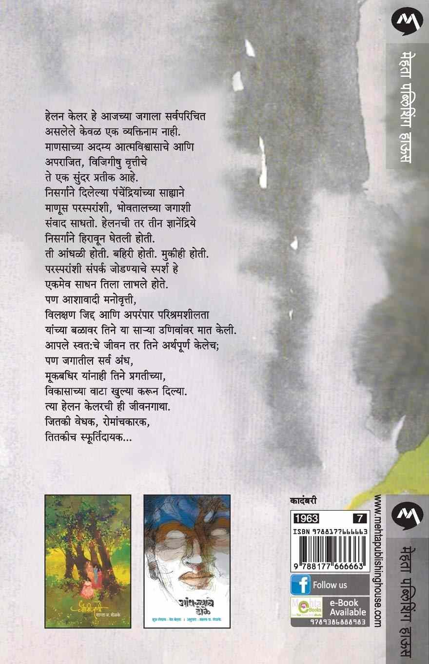 हेलन केलर हे आजच्या जगाला सर्वपरिचित असलेले केवळ एक व्यक्तिनाम नाही. माणसाच्या अदम्य आत्मविश्वासाचे आणि अपराजित, विजिगीषु वृत्तीचे ते एक सुंदर प्रतीक आहे. निसर्गाने दिलेल्या पंचेंद्रियांच्या साह्याने माणूस परस्परांशी, भोवतालच्या जगाशी संवाद साधतो. हेलनची तर तीन ज्ञानेंद्रिये निसर्गाने हिरावून घेतली होती. ती आंधळी होती. बहिरी होती. मुकीही होती. परस्परांशी संपर्क जोडण्याचे स्पर्श हे एकमेव साधन तिला लाभले होते. पण आशावादी मनोवृत्ती, विलक्षण जिद्द आणि अपरंपार परिश्रमशीलता यांच्या बळावर तिने या साया उणिवांवर मात केली. आपले स्वत:चे जीवन तर तिने अर्थपूर्ण केलेच; पण जगातील सर्व अंध, मूकबधिर यांनाही तिने प्रगतीच्या, विकासाच्या वाटा खुल्या करून दिल्या. त्या हेलन केलरची ही जीवनगाथा. जितकी वेधक, रोमांचकारक, तितकीच स्फूर्तिदायक...