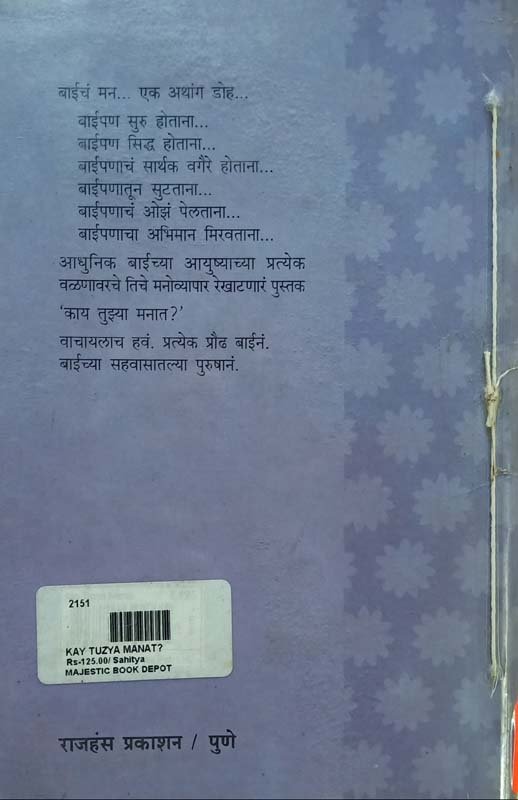 बाईचं मन… एक अथांग डोह… बाईपण सुरू होताना… बाईपण सिध्द होताना… ईपणाचं सार्थक वगैरे होताना… बाईपणातून सुटताना… बाईपणाचं ओझं पेलताना… बाईपणाचा अभिमान मिरवताना… आधुनिक बाईच्या आयुष्याच्या प्रत्येक वळणावरचे तिचे मनोव्यापार रेखाटणारं पुस्तक ‘काय तुझ्या मनात?’ वाचायलाच हवं. प्रत्येक प्रौढ बाईनं. बाईच्या सहवासातल्या पुरूषानं.