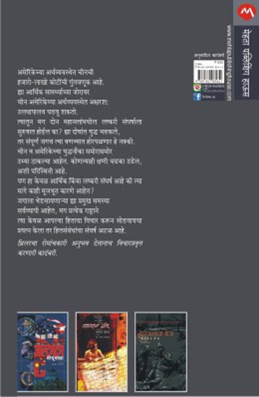 अमेरिकेच्या अर्थव्यवस्थेत चीनची हजारो-लाखो कोटींची गुंतवणूक आहे. ह्या आर्थिक सामथ्र्याच्या जोरावर चीन अमेरिकेच्या अर्थव्यवस्थेत अक्षरश: उलथापालथ घडवू शकते. त्यातून मग ह्या दोन महासत्तांमधील लष्करी संघर्षाला सुरुवात होईल का? ह्या दोघांत युद्ध भडकले, तर संपूर्ण जगच त्या वणव्यात होरपळणार हे नक्की.चीन व अमेरिकेच्या युद्धनौका समोरासमोर उभ्या ठाकल्या आहेत. कोणत्याही क्षणी भडका उडेल, अशी परिस्थिती आहे. पण हा केवळ आर्थिक किंवा लष्करी संघर्ष आहे का की, त्या मागे काही मूलभूत कारणे आहेत? जगाला भेडसावणा-या ह्या प्रमुख समस्या सर्वव्यापी आहेत, मग प्रत्येक राष्ट्राने त्या केवळ आपल्या हिताचा विचार करून सोडवायचा प्रयत्न केला, तर हितसंबंधाचा संघर्ष अटळ आहे.थ्रिलरचा रोमांचकारी अनुभव देतानाच विचारप्रवृत्त करणारी कादंबरी.