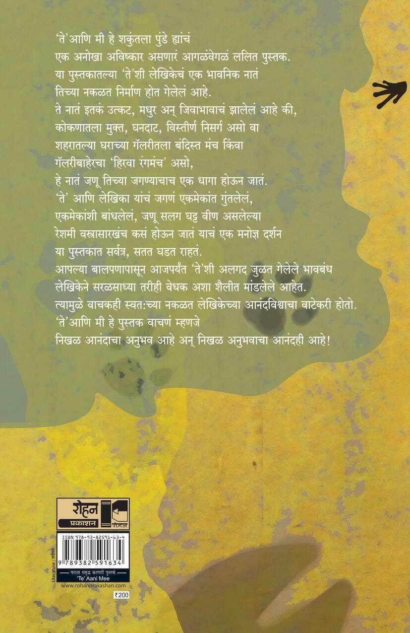 'ते' आणि मी हे शकुंतला पुंडे ह्यांचं एक अनोखा अविष्कार असणारं आगळंवेगळं ललित पुस्तक. या पुस्तकातल्या 'ते'शी लेखिकेचं एक भावनिक नातं तिच्या नकळत निर्माण होत गेलेलं आहे. ते नातं इतकं उत्कट, मधुर अन् जिवाभावाचं झालेलं आहे की, कोकणातला मुक्त, घनदाट, विस्तीर्ण निसर्ग असो वा शहरातल्या घराच्या गॅलरीतला बंदिस्त मंच किंवा गॅलरीबाहेरचा 'हिरवा रंगमंच' असो, हे नातं जणू तिच्या जगण्याचाच एक धागा होऊन जातं. 'ते' आणि लेखिका यांचं जगणं एकमेकांत गुंतलेलं, एकमेकांशी बांधलेलं, जणू सलग घट्ट वीण असलेल्या रेशमी वस्त्रासारखंच कसं होऊन जातं याचं एक मनोज्ञ दर्शन या पुस्तकात सर्वत्र, सतत घडत राहतं. आपल्या बालपणापासून आजपर्यंत 'ते'शी अलगद जुळत गेलेले भावबंध लेखिकेने सरळसाध्या तरीही वेधक अशा शैलीत मांडलेले आहेत. त्यामुळे वाचकही स्वत:च्या नकळत लेखिकेच्या आनंदविश्वाचा वाटेकरी होतो. 'ते' आणि मी हे पुस्तक वाचणं म्हणजे निखळ आनंदाचा अनुभव आहे अन् निखळ अनुभवाचा आनंदही आहे!
