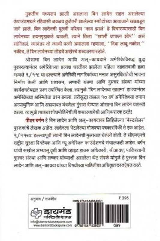 ओसामा बिन लादेन आणि अल्-कायदाने अमेरिकेविरुद्ध युद्ध पुकारल्यानंतर अमेरिकेच्या प्रत्यक्ष धरतीवर झालेला पहिला दहशतवादी हल्ला म्हणजे ९/११! या हल्ल्याने अमेरिकी नागरिकांच्या मनात असुरक्षिततेची भावना निर्माण केली आणि प्रशासन, लष्करी यंत्रणा आणि गुप्तचर संस्था यांच्या कार्यक्षमतेबद्दल प्रश्न उपस्थित केला. त्यामुळे 'बिन लादेनचा खातमा' हा त्यानंतर अमेरिकेच्या अस्मितेचा प्रश्न बनला. तरीसुद्धा तब्बल १० वर्षं अमेरिकेच्या तमाम अत्याधुनिक आणि अद्ययावत यंत्रणेला गुंगारा देण्यात ओसामा बिन लादेन यशस्वी ठरला. त्यामुळे त्याच्या शोधमोहिमेची ही कथा लक्षवेधी आणि थरारक ठरते! पीटर बर्गन हे बिन लादेन आणि अल्-कायदावर लिहिलेल्या 'बेस्टसेलर' पुस्तकांचे लेखक आहेत.