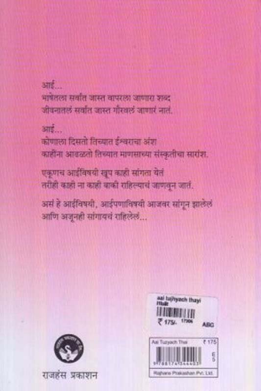 आई… भाषेतला सर्वात जास्त वापरला जाणारा शब्द जीवनातलं सर्वात जास्त गौरवलं जाणारं नातं. आई… कोणाला दिसतो तिच्यात ईश्र्वराचा अंश काहींना आढळतो तिच्यात माणसाच्या संस्कृतीचा सारांश. एकूणच आईविषयी खूप काही सांगता येतं तरीही काही ना काही बाकी राहिल्याचं जाणवून जातं. असं हे आईविषयी, आईपणाविषयी आजवर सांगून झालेलं आणि अजूनही सांगायचं राहिलेलं…