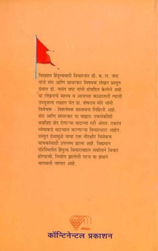 विख्यात हिदुत्ववादी विचारवंत डॉ ब ल वष्ट यांचे संघ आणि सावरकर विषयक लेखन प्रस्तुत ग्रंथात डॉ जयंत वष्ट यांनी संपादित केलेले आहे. या लेखनाचे महत्व व आजच्या काळातली त्याची उपयुक्तता लक्षात घेत प्रा. शेषराव मोरे यांनी विवेचक- विश्लेषक प्रस्तावना लिहिली आहे. संघ आणि सावरकर या बाह्यत: एकमेकींशी काहीशा छेद देणाऱ्या वाटल्या तरी अंतत: एकाच ध्येयाकडे वाटचाल करणाऱ्या विचारधारा आहेत. प्रस्तुत ग्रंथामुळे याचा एक नीरक्षीर विवेकच वाचकांसाठी उपलब्ध झाला आहे. विद्यमान परिस्थितीत हिंदुत्व विचाराबद्दल सर्वांगाने विचार होण्याची, निर्माण झालेली गरज या ग्रंथाने भागवली जाणार आहे.