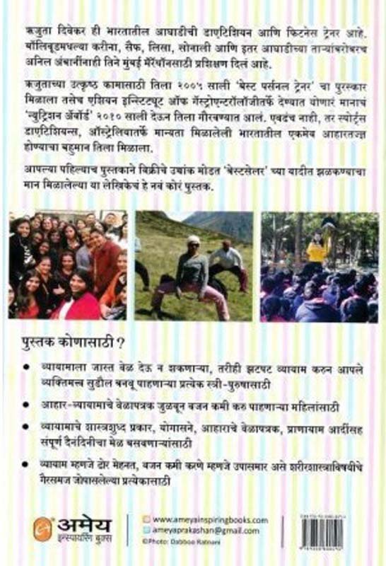 ऋजुता दिवेकर ही भारतातील आघाडीची डाएटिशियन आणि फिटनेस ट्रेनर आहे. बॉलिवूडमधल्या करीना, सैफ, लिसा, सोनाली आणि इतर आघाडीच्या तार्यांसबरोबरच अनिल अंबानींनाही तिने मुंबई मॅरॅथॉनसाठी प्रशिक्षण दिलं आहे. ऋजुताच्या उत्कृष्ठ कामासाठी तिला २००५ साली ‘बेस्ट पर्सनल ट्रेनर’ चा पुरस्कार मिळाला तसेच एशियन इन्स्टिट्यूट ऑफ गॅस्ट्रोएन्टॉलॉजीतर्फे देण्यात येणारं मानाचं ‘न्युट्रिशन अॅवॉर्ड’ २०१० साली देऊन तिला गौरवण्यात आलं. एवढचं नाही, तर स्पोर्ट्स डाएटिशियन्स, ऑस्ट्रेलियातर्फे मान्यता मिळालेली भारतातील एकमेव आहारतज्ज्ञ होण्याचा बहुमान तिला मिळाला.‘Vyayamashi Maitri Aarogyachi Khatri' is Marathi Translation of English Book 'Don't Lose Out,Work Out' by Rujuta Divekar