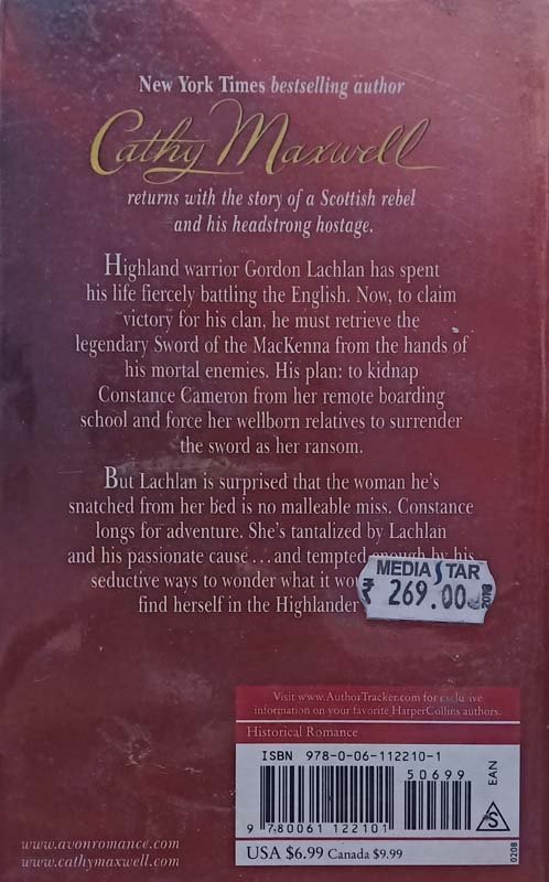 Highland warrior Gordon Lachlan has spent his life fiercely battling the English. Now, to claim victory for his clan, he must retrieve the legendary Sword of the MacKenna from the hands of his mortal enemies. His plan: to kidnap Constance Cameron from her remote boarding school and force her wellborn relatives to surrender the sword as her ransom. But Lachlan is surprised that the woman he's snatched from her bed is no malleable miss. Constance longs for adventure. She's tantalized by Lachlan and his passionate cause . . . and tempted enough by his seductive ways to wonder what it would be like to find herself in the Highlander's bed . . .