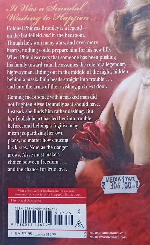 It Was a Scandal Waiting to Happen . . . Colonel Phineas Bromley is a legend—on the battlefield and in the bedroom. Though he's won many wars, and even more hearts, nothing could prepare him for his new life. When Phin discovers that someone has been pushing his family toward ruin, he assumes the role of a legendary highwayman. Riding out in the middle of the night, hidden behind a mask, Phin heads straight into trouble . . . and into the arms of the ravishing girl next door. Coming face-to-face with a masked man did not frighten Alyse Donnelly as it should have. Instead, she finds him rather dashing. But her foolish heart has led her into trouble before, and helping a fugitive may mean jeopardizing her own plans, no matter how enticing his kisses. Now, as the danger grows, Alyse must make a choice between freedom . . . and the chance for true love.