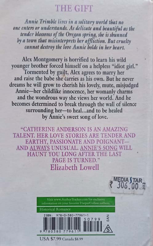 Alex Montgomery is horrified to learn his wild younger brother forced himself on a helpless “idiot girl." Tormented by guilt, Alex agrees to marry her and raise the babe she carries as his own. But he never dreams he will grow to cherish his lovely, mute, misjudged Annie-her childlike innocence, her womanly charms and the wondrous way she views her world. And he becomes determined to break through the wall of silence surrounding her to heal...and to be healed by Annie's sweet song of love.