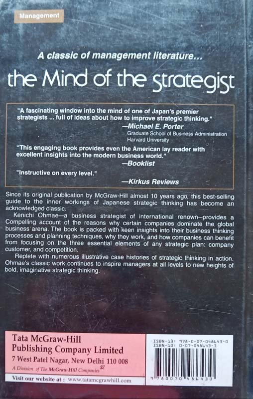 Since its original publication by McGraw-hill almost 10 years ago, this best-selling guide to the inner workings of Japanese strategic thinking has become an acknowledged classic. Kenichi Ohmae―a business strategist of international renown―provides a Compelling account of the reasons why companies dominate the global processes and planning techniques, why they work, and how companies can benefit from focusing on the three essential elements of any strategic plan: company customer and competition. Replete with numerous illustrative case histories of strategic thinking in action, Ohmae’s classic work continues to inspire managers at all levels to new heights of bold, imaginative strategic thinking.