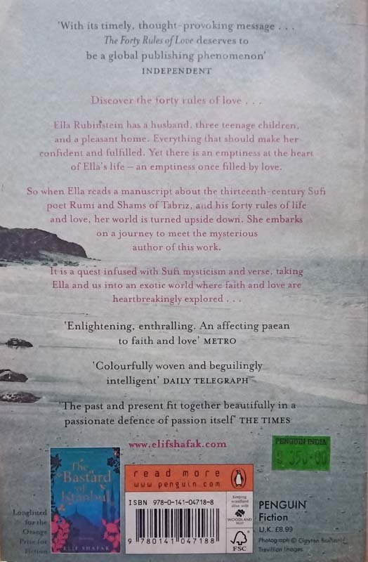"Every true love and friendship is a story of unexpected transformation. If we are the same person before and after we loved, that means we haven't loved enough..." Ella Rubinstein has a husband, three teenage children, and a pleasant home. Everything that should make her confident and fulfilled. Yet there is an emptiness at the heart of Ella's life - an emptiness once filled by love. So when Ella reads a manuscript about the thirteenth-century Sufi poet Rumi and Shams of Tabriz, and his forty rules of life and love, her world is turned upside down. She embarks on a journey to meet the mysterious author of this work. It is a quest infused with Sufi mysticism and verse, taking Ella and us into an exotic world where faith and love are heartbreakingly explored. . .
