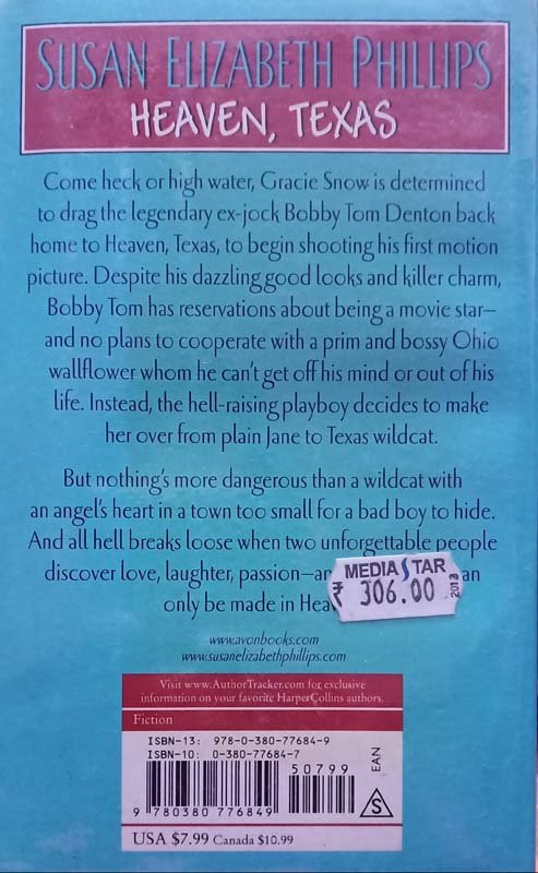 Come heck or high water, Gracie Snow is determined to drag the legendary ex-jock Bobby Tom Denton back home to Heaven, Texas, to begin shooting his first motion picture. Despite his dazzling good looks and killer charm, Bobby Tom has reservations about being a movie star — and no plans to cooperate with a prim and bossy Ohio wallflower whom he can’t get off his mind or out of his life. Instead, the hell-raising playboy decides to make her over from plain Jane to Texas wildcat. But nothing’s more dangerous than a wildcat with an angel’s heart in a town too small for a bad boy to hide.