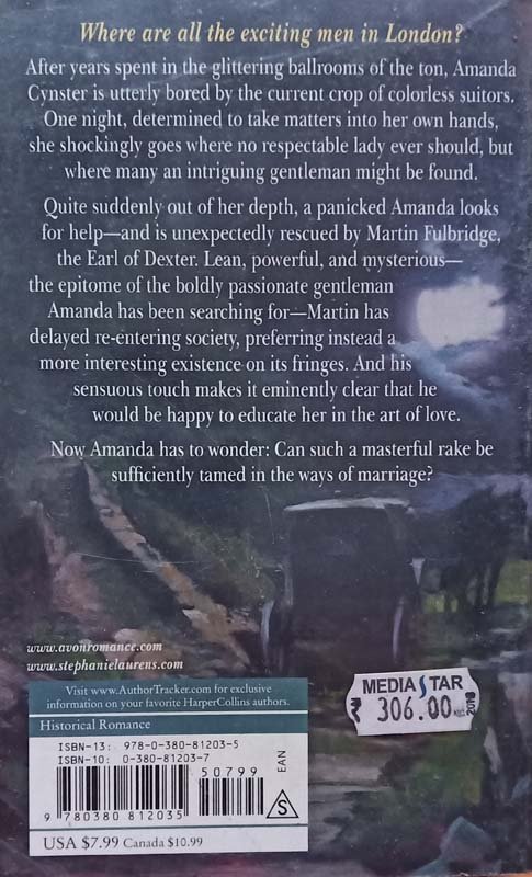 Where are all the exciting men in London? After spending years in the glittering ballrooms of the town, Amanda Cynster is utterly bored by the current crop of bland suitors. Determined to take matters into her own hands, one night she shockingly goes where no respectable lady ever should, but where many an intriguing gentleman might be found. But titillating excitement quickly turns to panic when Amanda discovers she's quite out of her depth. She looks around for help - and is unexpectedly rescued by the Earl of Dexter. Lean, sensuous, and mysterious, he has delayed re-entering society, preferring instead a more interesting existence on its fringes. He's the epitome of the boldly passionate gentleman Amanda has been searching for, but although his very touch makes it clear he's willing to educate her in the art of love, Amanda has to wonder if such a masterful rake can be sufficiently tamed into the ways of marriage.