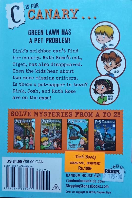 Kids love collecting the entire alphabet and super editions! With over 8 million copies in print, the A to Z Mysteries® have been hooking chapter book readers on mysteries and reading for years. Now this classic kid favorite is back with a bright new look! C is for Canary . . . Green Lawn has a pet problem! Dink’s neighbor can’t find her canary. Ruth Rose’s cat, Tiger, has also disappeared. Then the kids hear about two more missing critters. Is there a pet-napper in town? Dink, Josh, and Ruth Rose are on the case!