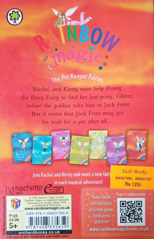 Fairyland is in uproar! Jack Frost has stolen the Pet Fairies magical pets. Without them, the Pet Fairies can't ensure that pets in the human world find the right owners. And now the pets have escaped from Jack Frost's ice castle and are roaming the human world! Rachel and Kirsty have to help get the pets back...before it's too late. 'These stories are magic; they turn children into readers!' ReadingZone.com Read all seven fairy adventures in the Pet Fairies set! Katie the Kitten Fairy; Bella the Bunny Fairy; Georgia the Guinea Pig Fairy; Lauren the Puppy Fairy; Harriet the Hamster Fairy; Molly the Goldfish Fairy; Penny the Pony Fairy. If you like Rainbow Magic, check out Daisy Meadows' other series: Magic Animal Friends and Unicorn Magic!