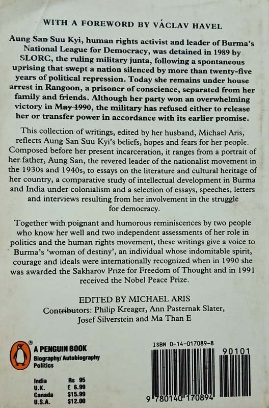 Freedom from Fear - collected writings from the Nobel Peace prize winner Aung San Suu Kyi Aung San Suu Kyi's collected writings - edited by her late husband, whom the ruling military junta prevented from visiting Burma as he was dying of cancer - reflects her greatest hopes and fears for her fellow Burmese people, and her concern about the need for international co-operation in the continuing fight for Burma's freedom. Bringing together her most powerful speeches, letters and interviews, this remarkable collection gives a voice to Burma's 'woman of destiny', whose fate remains in the hands of her enemies. Recipient of the Nobel Peace Prize and the Sakharov Prize for Freedom of Thought, and leader of Burma's National League for Democracy, Aung San Suu Kyi is one of the world's greatest living defenders of freedom and democracy, and an inspiration to millions worldwide. This book sits alongside Nelson Mandela's memoir Long Walk to Freedom. 'This book is bound to become a classic for a new generation of Asians who value democracy even more highly than Westerners do, simply because they are deprived of the basic freedoms that Westerners take for granted'The New York Times 'Aung San Suu Kyi's extraordinary achievement has been to confront the regime peacefully, reasonably and persuasively... [in] one of the most laudable continuing acts of political courage' Financial Times 'Such is the depth of passion and learning that she brings to her writings about national identity and its links with culture and language that she has attracted the admiration of intellectuals around the world' Sunday Times Aung San Suu Kyi is the leader of Burma's National League for Democracy. She was placed under house arrest in Rangoon in 1989, where she remained for almost 15 of the 21 years until her release in 2010, becoming one of the world's most prominent political prisoners. She is also the author of Letters from Burma.