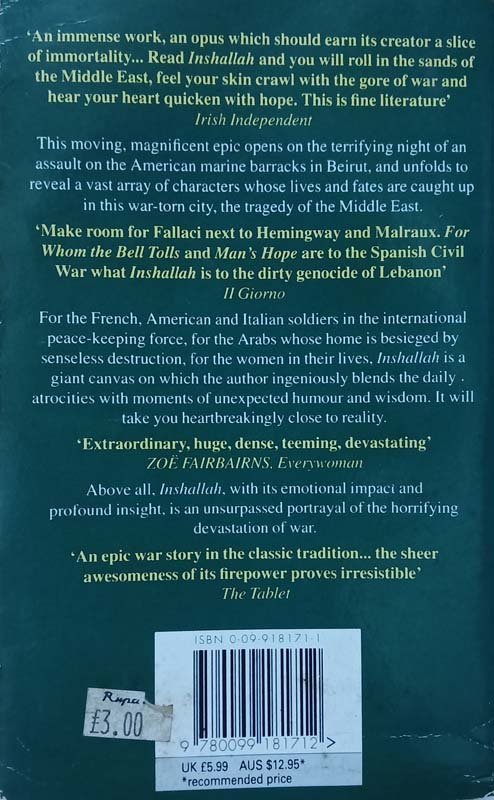 This novel opens in Beirut on the night of the terrifying assault on the US Marine barracks. It is told from the viewpoint of young Italian soldiers in the international peace-keeping force stationed in that strife-torn city, the Arabs and the women in their lives. By the author of "A Man".