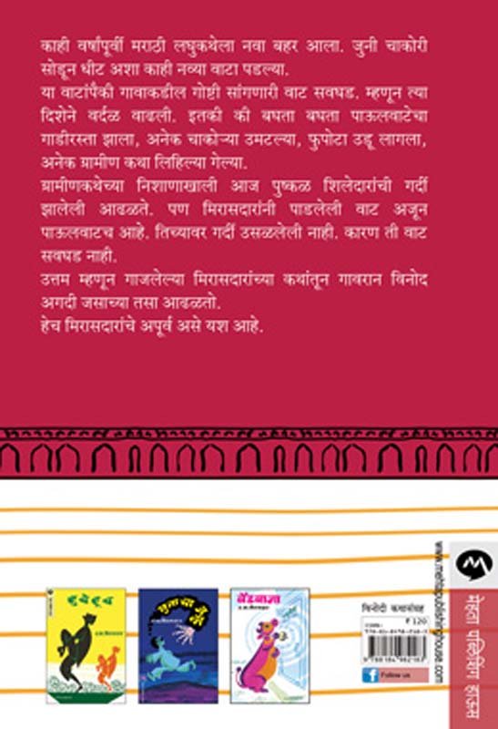 काही वर्षांपूर्वी मराठी लघुकथेला नवा बहर आला. जुनी चाकोरी सोडून धीट अशा काही नव्या वाटा पडल्या. या वाटांपैकी गावाकडील गोष्टी सांगणारी वाट सवघड. म्हणून त्या दिशेने वर्दळ वाढली. इतकी की बघता बघता पाऊलवाटेचा गाडीरस्ता झाला, अनेक चाकोया उमटल्या, फुपोटा उडू लागला, अनेक ग्रामीण कथा लिहिल्या गेल्या. ग्रामीणकथेच्या निशाणाखाली आज पुष्कळ शिलेदारांची गर्दी झालेली आढळते. पण मिरासदारांनी पाडलेली वाट अजून पाऊलवाटच आहे. तिच्यावर गर्दी उसळलेली नाही. कारण ती वाट सवघड नाही. उत्तम म्हणून गाजलेल्या मिरासदारांच्या कथांतून गावरान विनोद अगदी जसाच्या तसा आढळतो. हेच मिरासदारांचे अपूर्व असे यश आहे.