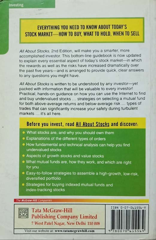 This title provides everything you need to know about today's stock market - how to buy, what to hold, when to sell. "All About Stocks, Second Edition", will make you a smarter, more accomplished investor. This bottom-line guidebook is now updated to explain every essential aspect of today's stock market - in which the rewards as well as the risks have increased dramatically over the past five years - and is arranged to provide quick, clear answers to any questions you might have."All About Stocks" is written to be understood by an investor - yet packed with information that will be valuable to everyone! Practical, hands-on guidance on how you can use the Internet to find and buy undervalued stocks, strategies on selecting a mutual fund for both above-average returns and below-average risk, types of trades that can significantly increase your safety during turbulent markets and it's all here. Before you invest, read "All About Stocks" and discover: what stocks are, and why you should own them; explanations of the different types of orders; how fundamental and technical analysis can help you find undervalued stocks; aspects of growth stocks and value stocks; what mutual funds are, how they work, and which are right for you; easy-to-follow strategies to assemble a high-growth, low-risk, versified portfolio; and strategies for buying indexed mutual funds and index-tracking stocks.