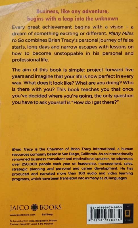 Business, like any adventure, begins with a leap into the unknown. Every great achievement begins with a vision – a dream of something exciting or different. Many Miles to Go combines Brian Tracy’s personal journey of false starts, long days and narrow escapes with lessons on how to become unstoppable in his personal and professional life. The aim of this book is simple: project forward five years and imagine that your life is now perfect in every way. What does it look like? What are you doing? Who is there with you? This book teaches you that once you’ve decided where you’re going, the only question you have to ask yourself is “How do I get there?” Brian Tracy is the Chairman of Brian Tracy International, a human resources company based in San Diego, California. As an internationally renowned business consultant and motivational speaker, he addresses over 250,000 people each year on leadership, management, sales, strategic planning and personal and career development. He has produced and narrated more than 300 audio and video learning programs, which have been translated into as many as 20 languages.