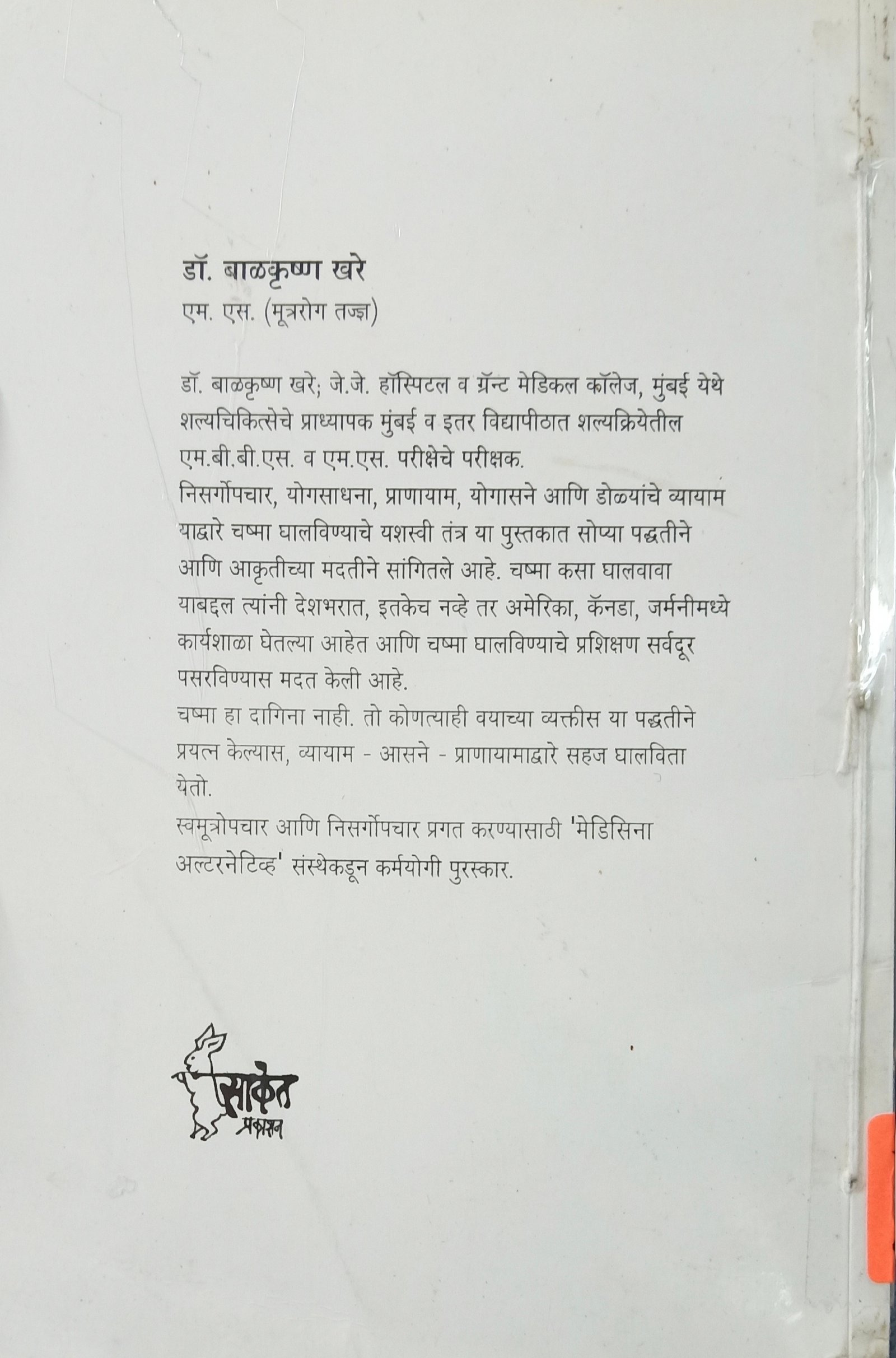 डॉक्टर बाळकृष्ण खरे जे. जे. हॉस्पिटल व ग्रँन्ट मेडिकल कॉलेज, मुंबई येथे शल्यचिकित्सेचे प्राध्यापक मुंबई व इतर विद्यापीठात शल्यक्रियेतील एम बी बी एस व एम एस परीक्षेचे परीक्षक. निसर्गोपचार, योगसाधना, प्राणायाम, योगासने आणि डोळ्यांचे व्यायाम याद्वारे चष्मा घालवण्याचे यशस्वी तंत्र या पुस्तकात सोप्या पद्धतीने आणि आकृतीच्या मदतीने सांगितले आहे. चष्मा कसा घालवावा याबद्दल त्यांनी देशभरात, इतकेच नव्हे तर अमेरिका, कॅनडा, जर्मनीमध्ये कार्यशाळा घेतले आहेत आणि चष्मा घालवण्याचे प्रशिक्षण सर्वदूर पसरवण्यास मदत केली आहे. चष्मा हा दागिने नाही. तो कोणत्याही वयाच्या व्यक्तीस या पद्धतीने प्रयत्न केल्यास व्यायाम असणे प्राणायामाद्वारे सहज घालविता येतो. स्वमुत्रोपचार आणि निसर्गोपचार प्रगत करण्यासाठी 'मेडिसिना अल्टरनेटिव्ह' संस्थेकडून कर्मयोगी पुरस्कार.