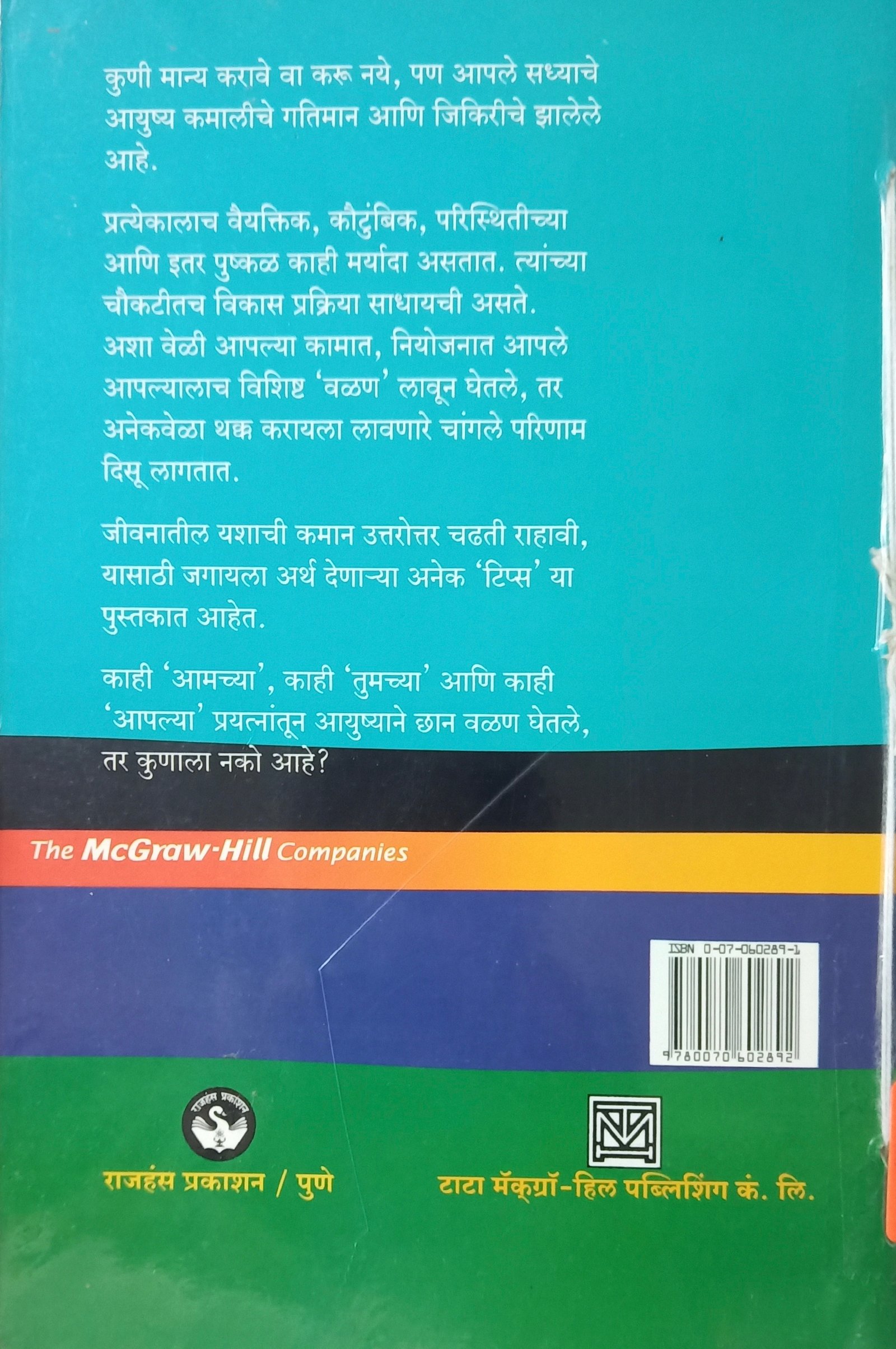 कुणी मान्य करावे वा करू नये पण आपले सध्याचे आयुष्य कमालीचे गतिमान आणि जिकरीचे झाले आहे. प्रत्येकालाच वैयक्तिक, कौटुंबिक, परिस्थितीच्या आणि इतर पुष्कळ काही मर्यादा असतात. त्यांच्या चौकटीतच विकास प्रक्रिया साधायची असते. अशावेळी आपल्या कामात, नियोजनात आपले आपल्यालाच विशिष्ट 'वळण' लावून घेतले तर अनेक वेळा थक्क करायला लावणारे चांगले परिणाम दिसू लागतात. जीवनातील यशाची कमान उत्तरोत्तर चढती राहावी यासाठी जगायला अर्थ देणाऱ्या अनेक टिप्स या पुस्तकात आहेत. काही 'आमच्या' काही 'तुमच्या' आणि काही 'आपल्या' प्रयत्नातून आयुष्याने छान वळण घेतले तर कुणाला नको आहे?