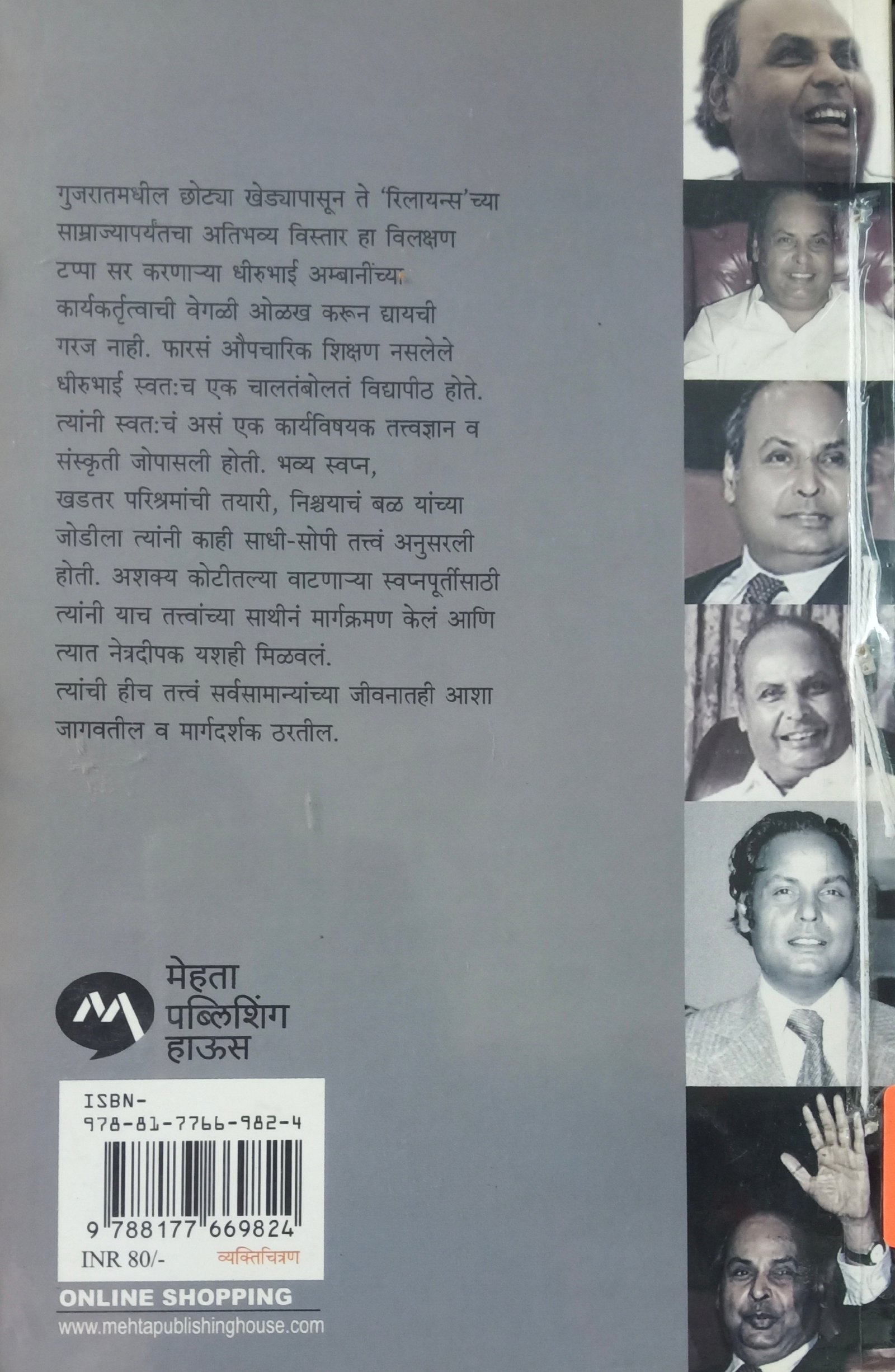 गुजरातमधील छोट्या खेड्यापासून ते ‘रिलायन्स’च्या साम्राज्यापर्यंतचा अतिभव्य विस्तार हा विलक्षण टप्पा सर करणा-या धीरुभाई अम्बानींच्या कार्यकर्तृत्वाची वेगळी ओळख करून द्यायची गरज नाही. फारसं औपचारिक शिक्षण नसलेले धीरुभाई स्वत:च एक चालतंबोलतं विद्यापीठ होते. त्यांनी स्वत:चं असं एक कार्यविषयक तत्त्वज्ञान व संस्कृती जोपासली होती. भव्य स्वप्नं, खडतर परिश्रमांची तयारी, निश्चयाचं बळ यांच्या जोडीला त्यांनी काही साधी-सोपी तत्त्वं अनुसरली होती. अशक्य कोटीतल्या वाटणा-या स्वप्नपूर्तीसाठी त्यांनी याच तत्त्वांच्या साथीनं मार्गक्रमण केलं आणि त्यात नेत्रदीपक यशही मिळवलं. त्यांची हीच तत्त्वं सर्वसामान्यांच्या जीवनातही आशा जागवतील व मार्गदर्शक ठरतील.