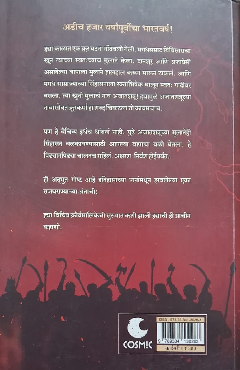 अडीच हजार वर्षांपूर्वीचा भारतवर्ष। ह्या काळात एक क्रूर घटना नोंदवली गेली. मगधसम्राट बिंबिसाराचा खून त्याच्या स्वतःच्याच मुलाने केला. दानशूर आणि प्रजाप्रेमी असलेल्या बापाला मुलाने हालहाल करून मारून टाकलं. आणि मगध साम्राज्याच्या सिंहासनाला रक्ताभिषेक घालून स्वतः गादीवर बसला. त्या खुनी मुलाचं नाव अजातशत्रू! ह्यामुळे अजातशत्रूच्या नावासोबत क्रूरकर्मा हा शब्द चिकटला तो कायमचाच. पण हे वैचित्र्य इथंच थांबलं नाही. पुढे अजातशत्रूच्या मुलानेही सिंहासन बळकावण्यासाठी आपल्या बापाचा बळी घेतला. हे पिढ्यानपिढ्या चालतच राहिलं. अक्षरशःनिर्वंश होईपर्यंत..ही अद्भुत गोष्ट आहे इतिहासाच्या पानांमधून हरवलेल्या एका राजघराण्याच्या अंताची; ह्या विचित्र क्रौर्यमालिकेची सुरुवात कशी झाली ह्याची ही प्राचीन कहाणी.