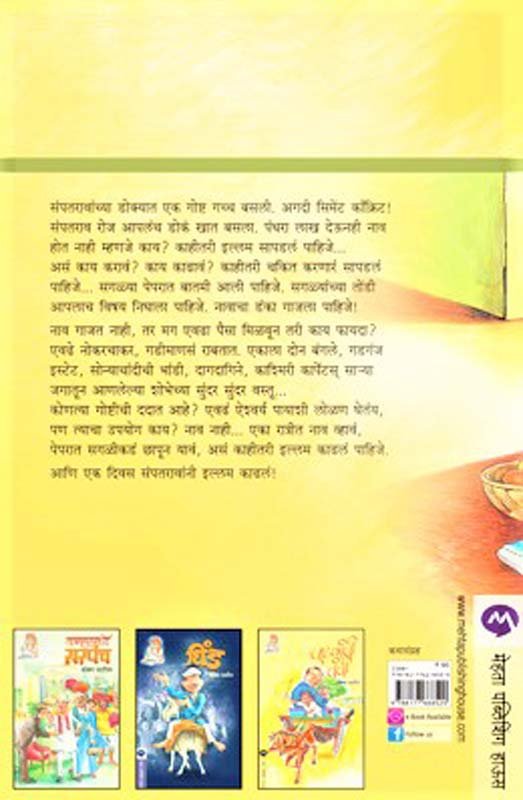 संपतरावांच्या डोक्यात एक गोष्ट गच्च बसली. अगदी सिमेंट काँक्रिट! संपतराव रोज आपलंच डोवंÂ खात बसला. पंधरा लाख देऊनही नाव होत नाही म्हणजे काय? काहीतरी इल्लम सापडलं पाहिजे... असं काय करावं? काय काढावं? काहीतरी चकित करणारं सापडलं पाहिजे... सगळ्या पेपरात बातमी आली पाहिजे. सगळ्यांच्या तोंडी आपलाच विषय निघाला पाहिजे. नावाचा डंका गाजला पाहिजे! नाव गाजत नाही, तर मग एवढा पैसा मिळवून तरी काय फायदा? एवढे नोकरचाकर, गडीमाणसं राबतात. एकाला दोन बंगले, गडगंज इस्टेट, सोन्याचांदीची भांडी, दागदागिने, काश्मिरी कार्पेटस् साNया जगातून आणलेल्या शोभेच्या सुंदर सुंदर वस्तू... कोणत्या गोष्टीची ददात आहे? एवढं ऐश्वर्य पायाशी लोळण घेतंय, पण त्याचा उपयोग काय? नाव नाही... एका रात्रीत नाव व्हावं, पेपरात सगळीकडं छापून यावं, असं काहीतरी इल्लम काढलं पाहिजे. आणि एक दिवस संपतरावांनी इल्लम काढलं!