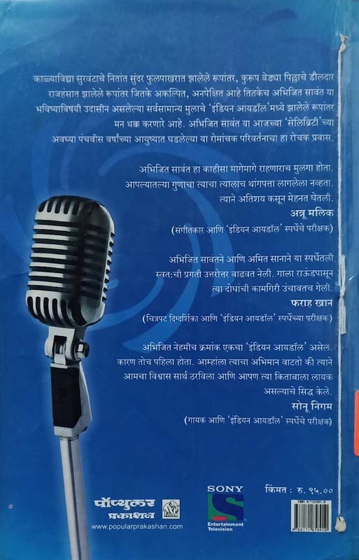 काळ्याविद्या सुरवंटाचे नितांत सुंदर फुलपाखरात झालेले रूपांतर, कुरूप वेड्या पिल्लाचे डौलदार राजहंसात झालेले रूपांतर जितके अकल्पित, अनपेक्षित आहे तितकेच अभिजित सावंत या भविष्याविषयी उदासीन असलेल्या सर्वसामान्य मुलाचे 'इंडियन आयडॉल'मध्ये झालेले रूपांतर मन थक्क करणारे आहे. अभिजित सावंत या आजच्या 'सेलिब्रिटी'च्या अवघ्या पंचवीस वर्षांच्या आयुष्यात घडलेल्या या रोमांचक परिवर्तनाचा हा रोचक प्रवास.