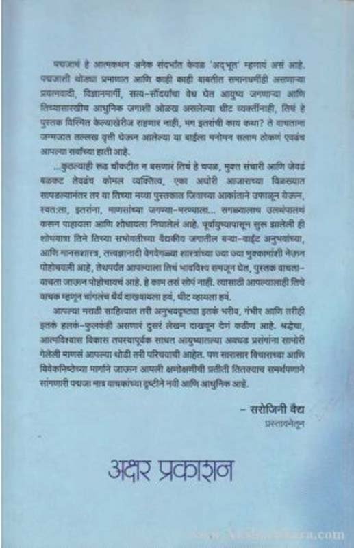 हे पुस्तक म्हणजे लेखिकेनं जवळपास दहा वर्ष एका भयानक असाध्य व्याधीशी,असामान्य धैर्याने केलेल्या झुंजीचा प्रथमपुरुषी वृत्तांत आहे.तो इतका सर्वांगसुंदर उतरला आहे की तो एखाद्या कादंबरीसारखा न कंटाळता वाचून काढता येतो. -प्रा.दि.य.देशपांडे