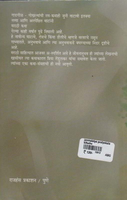 गाडगीळ - गोखल्यांची नव - कथाही जुनी वाटावी इतक्या नव्या आणि अनपेक्षित वाटांनी मराठी कथा गेल्या काही वर्षात पुढेनिघाली आहे. हे नावीन्य घाटाचे, तंत्राचे किंवा शैलीचे म्हणजे वरवरचे नसून गाभ्यातले, अनुभवाचे आणि त्या अनुभवाकडे बघण्याच्या निडर दृष्टीचे आहे. मराठी साहित्यात आजवर अ - स्पर्शित असे हे जीवनानुभव ही ज्यांच्या लेखनाची खासीयत त्या कथाकारात प्रिया तेंडूलकर यांचा समावेश केला जातो. त्यांच्या एका - कथा - संग्रहाची ही नवी आवृत्ती.