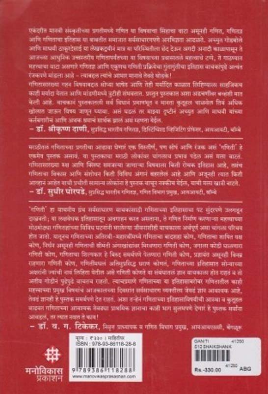 मराठीतलं गणिताच्या प्रगतीचा आढावा घेणारं एक विस्तीर्ण, पण सोपं आणि रंजक असं ‘गणिती’ हे एकमेव पुस्तक असावं. या पुस्तकाचा मराठी लोकांवर चांगलाच प्रभाव पडेल असं मला वाटतं गणितासारख्या रुक्ष आणि क्लिष्ट समजल्या जाणार्या विषयाला किती रोचक इतिहास आह, तसंच गणिताचा विकास आणि संशोधन किती विविध अंगांन बहरलेलं आहे आणि अजूनही त्यात किती आव्हानं आहेत याची प्रचीती सामान्य लोकांना हे पुस्तक वाचून नक्कीच येईल, याची मला खात्री वाटते. डॉ. सुधीर घोरपडे, सुप्रसिद्ध भाअरतीय गणितज्ञ, गणित विभाग प्रभुग, आयाअयटी, बॉम्बे