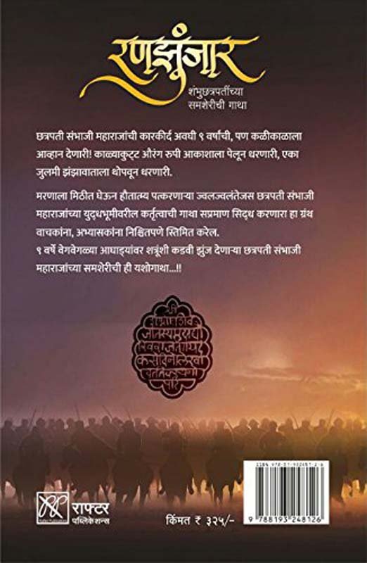 छत्रपती संभाजी महाराजांची कारकीर्द अवघ्या नऊ वर्षांची, पण कळीकाळाला आव्हान देणारी ! काळ्याकुट्ट औरंगरुपी आकाशाला पेलून धरणारी, एका जुलामी झंजावाताला थोपवून धरणारी. नाऊ वर्षे वेगवेगळ्या आघाड्यांवर शत्रूशी कडवी झुंज देणार्या छत्रपती संभाजी महाराजांच्या समशेरीची यशोगाथा म्हणजेच “रणझुंजार”. मरणाला मिठीत घेऊन हौतात्म्य पत्करणार्या ज्वलज्वलनतेजस छत्रपती संभाजी महाराजांच्या युद्धभूमीवरील कर्तृत्वाची गाथा सप्रमाण सिद्ध करणारा डॉ. सदाशिव शिवदे लिखित हा ग्रंथ वाचकांना, अभ्यसकांना निश्चितपणे स्तिमित करेल.