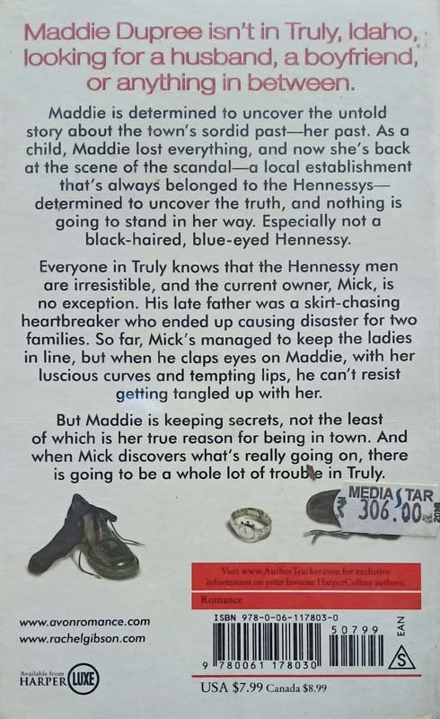 When Maddie Dupree enters Hennessy's Bar in Truly, Idaho, she isn't looking for a husband, a boyfriend, or even just a drink. She's looking for the truth about her past, and nothing will stand in her way. Especially not a Hennessy boy. Everyone knows Mick Hennessy is irresistible. So far, he's managed to keep the ladies in line, but when he claps eyes on gorgeous Maddie, he just can't help getting involved. But Maddie's keeping secrets about why she's in town - and when those secrets are revealed, there'll be a whole lot of trouble in Truly...