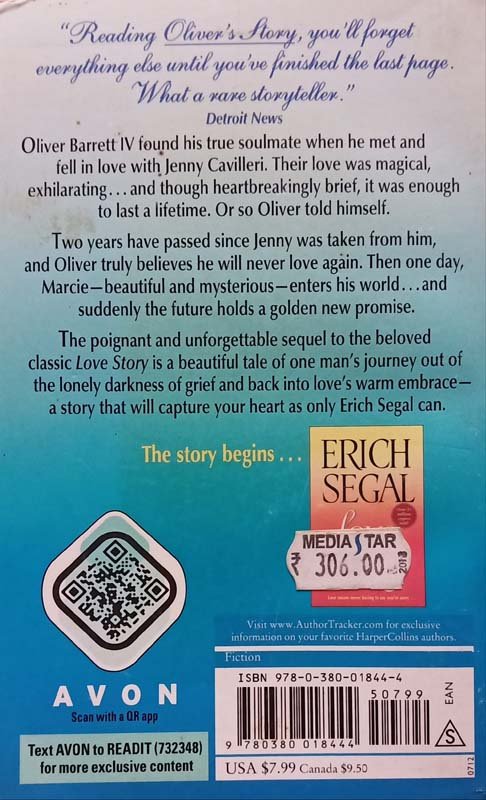 Oliver Barrett IV found his true soulmate when he met and fell in love with Jenny Cavilleri. Their love was magical, exhilarating . . . though heartbreakingly brief, it was enough to last a lifetime. Or so Oliver told himself. Two years have passed since Jenny was taken from him, and Oliver truly believes he will never love again. Then one day Marcie - beautiful and mysterious - enters his world . . . and suddenly the future holds a golden new promise. With all the excitement and emotion that made LOVE STORY a worldwide bestseller, here is a stirring romantic novel that sweeps from New York's fashionable East Side to a snowy Christmas in Massachusetts to a shattering moment of truth in exotic Hong Kong - the story of one young man's journey out of sadness and into love.