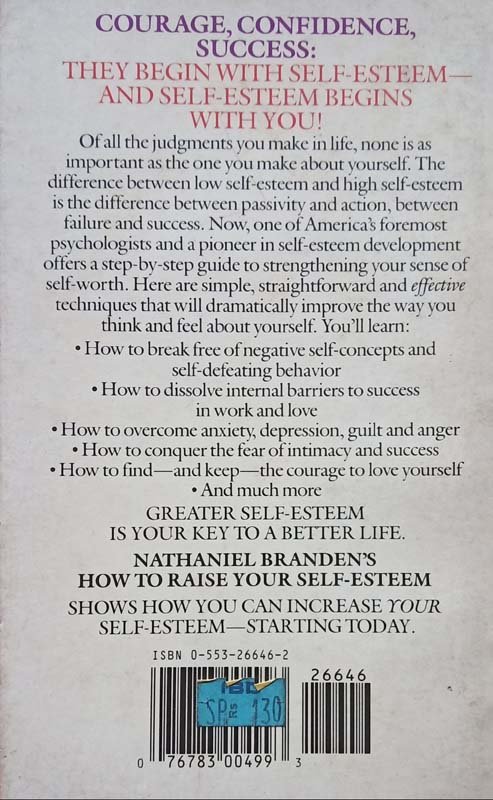 Of all the judGments you make in life, none is as important as the one you make about yourself. The difference between low self-esteem and high self-esteem is the difference between passivity and action, between failure and success. Now, one of America's foremost psychologists and a pioneer in self-esteem development offers a step-by-step guide to strengthening your sense of self-worth. Here are simple, straightforward and effective techniques that will dramatically improve the way you think and feel about yourself. You'll learn:How to break free of negative self-concepts and self-defeating behavior. How to dissolve internal barriers to success in work and love. How to overcome anxiety, depression, guilt and anger. How to conquer the fear of intimacy and success. How to find -- and keep -- the courage to love yourself.And much more.