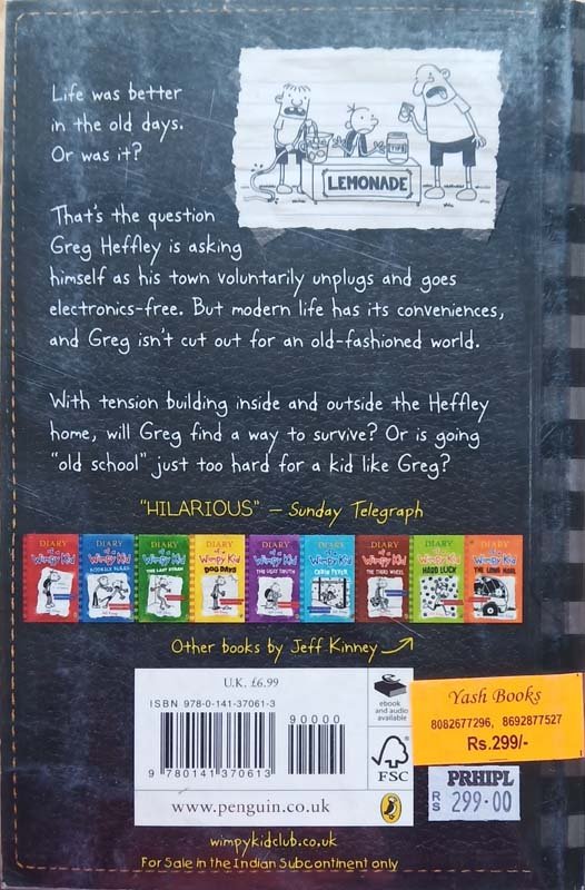 Life was better in the old days. Or was it? That's the question Greg Heffley is asking as his town voluntarily unplugs and goes electronics-free. But modern life has its conveniences and Greg isn't cut out for an old-fashioned world. With tension building inside and outside the Heffley home, will Greg find a way to survive? Or is going 'old school' just too hard for a kid like Greg?